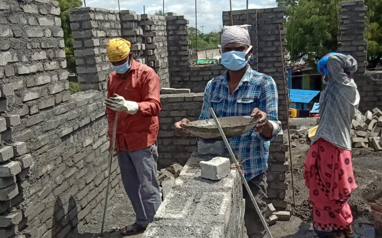 इन सभी कठिनाइयों के बीच हम कंस्ट्रक्शन का काम भी चालू रखना चाहते थे। संजयनगर के सभी निवासियों को दिया वादा हमें पूरा जो करना था। कंस्ट्रक्शन का काम चालू रखने की अनुमति सरकार ने दे दी थी, पर अहमदनगर में ठेकेदार और मज़दूर दोनों ही मुश्किल से मिल रहे थे। 18 ठेकेदारों से बात करने के बाद हमने अंत में एक के साथ बात पक्की की, और मई में काम दोबारा से चालू करवाया। संजयनगर के कुछ निवासियों को हमनें कंस्ट्रक्शन साइट पे काम भी दिया जब लॉकडाउन में उन्होंने अपना रोज़गार खोया था। जैसे जैसे मज़दूरों की संख्या साइट पर बढ़ रही थी, COVID सम्बंधित नियमों को भी उतने ही गंभीरता से लागु किया जा रहा था। आज लगभग 3 महीनो के बाद हम कह सकते है कि बिल्डिंग का कार्य नियमित रूप से बढ़ रहा है और हम संजयनगर के परिवारों को उनके घर सौपने का वादा दृढ़ निश्चय के साथ निभाने में लगे है।